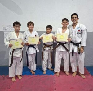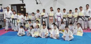 Durante la clase de niños se realizó demostración por parte de los chicos que participaron del Torneo Nacional de Chaco, además se efectuó entrega de diplomas y recordatorios como así tambien cambio de cinturones a quienes aprobaron el examen realizado durante el Curso Binacional.